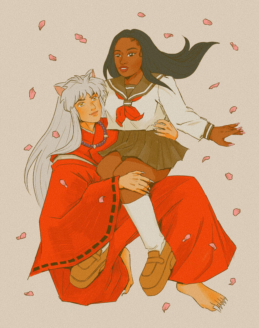 $230 : 2 figures full body ($240) + simple abstract background/design element - artist choice (Free) + extra body discount (-$10) = $230★ LOL my friend commissioned this Inuyasha X Megan Thee Stallion drawing when my fees were lower and also tipped my $20. Still my most iconic piece to date!